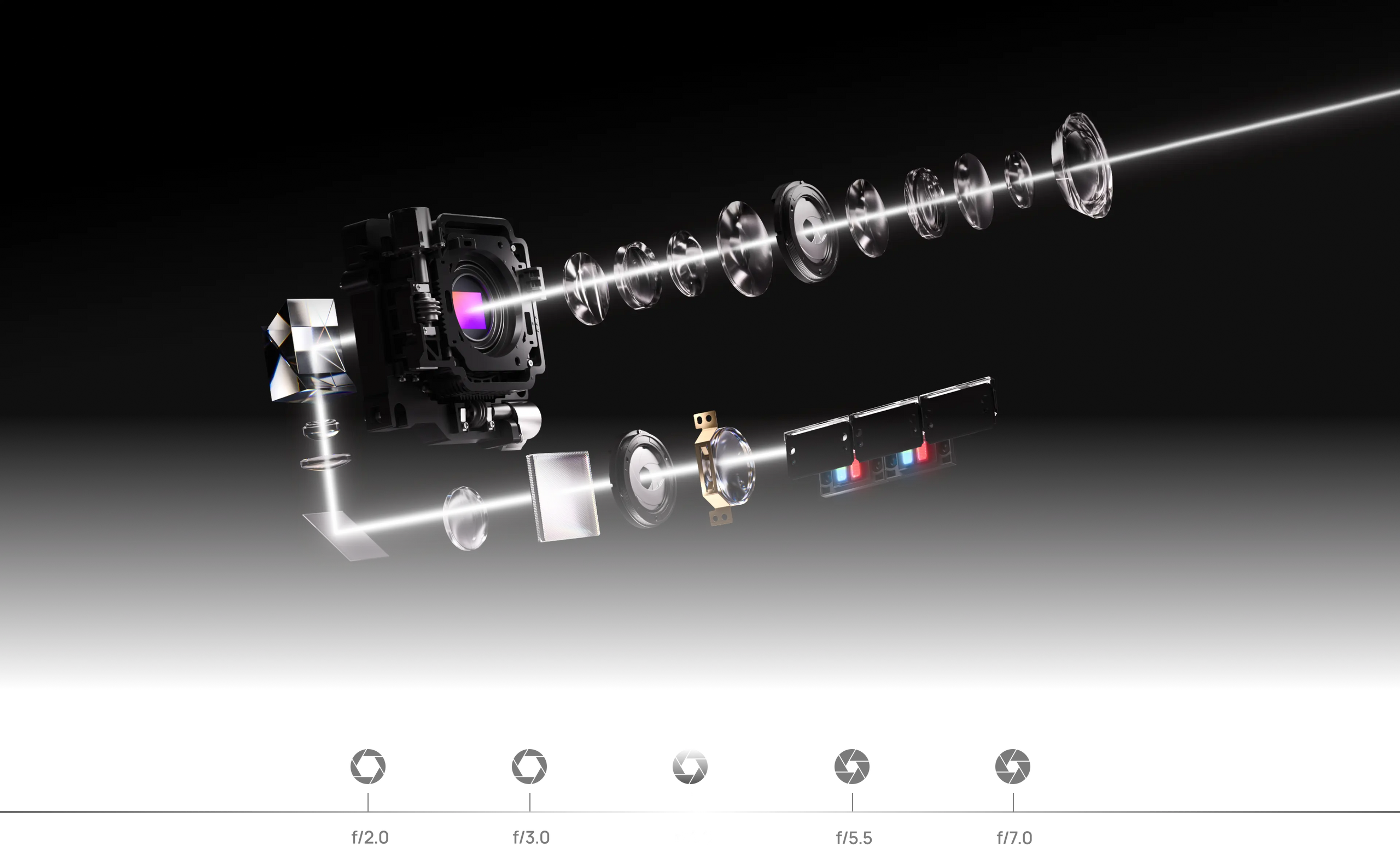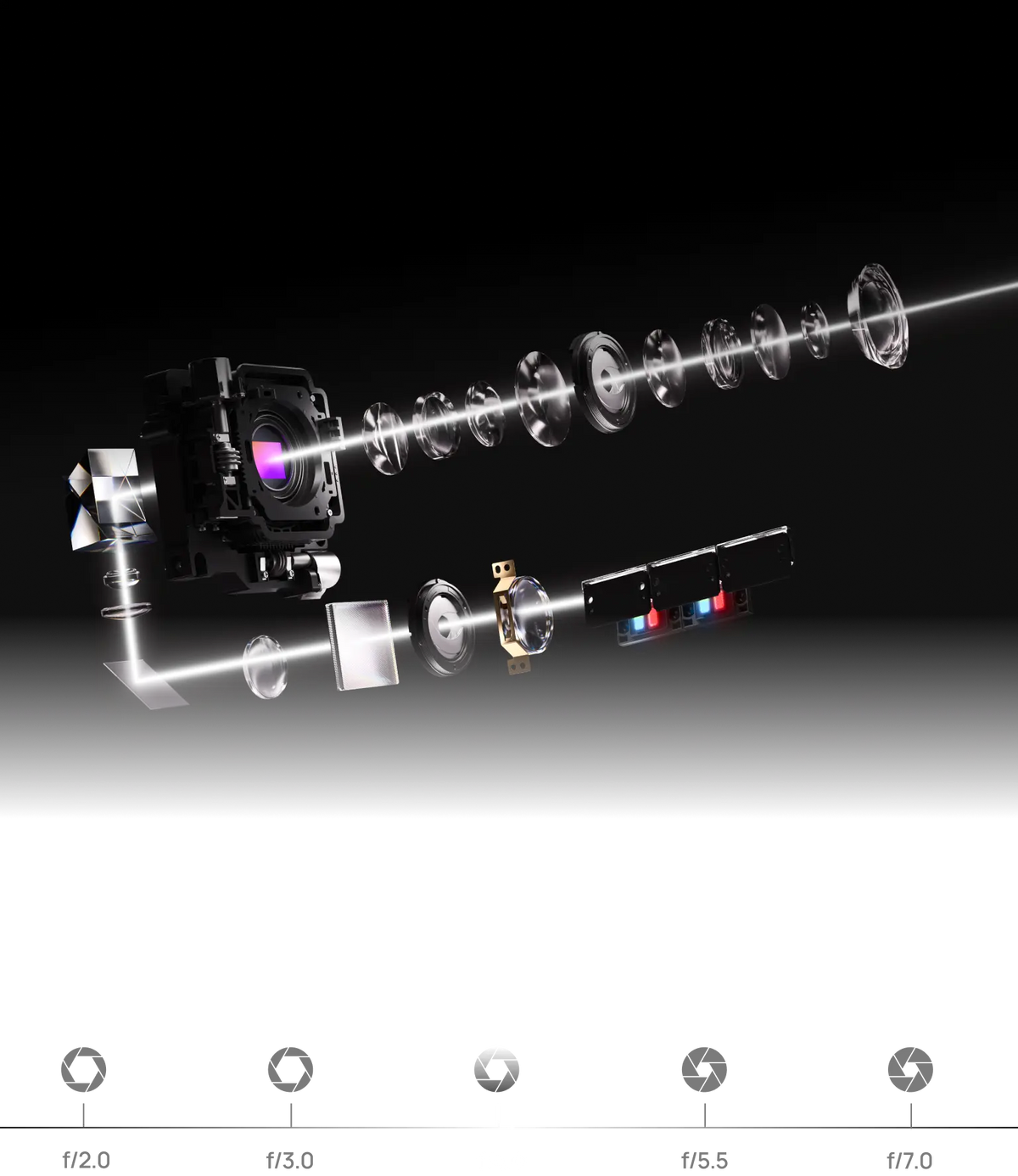 Two self-adjusting iris modules with five selectable levels proactively sculpt scene luminance, preserving deep blacks without dulling highlights.