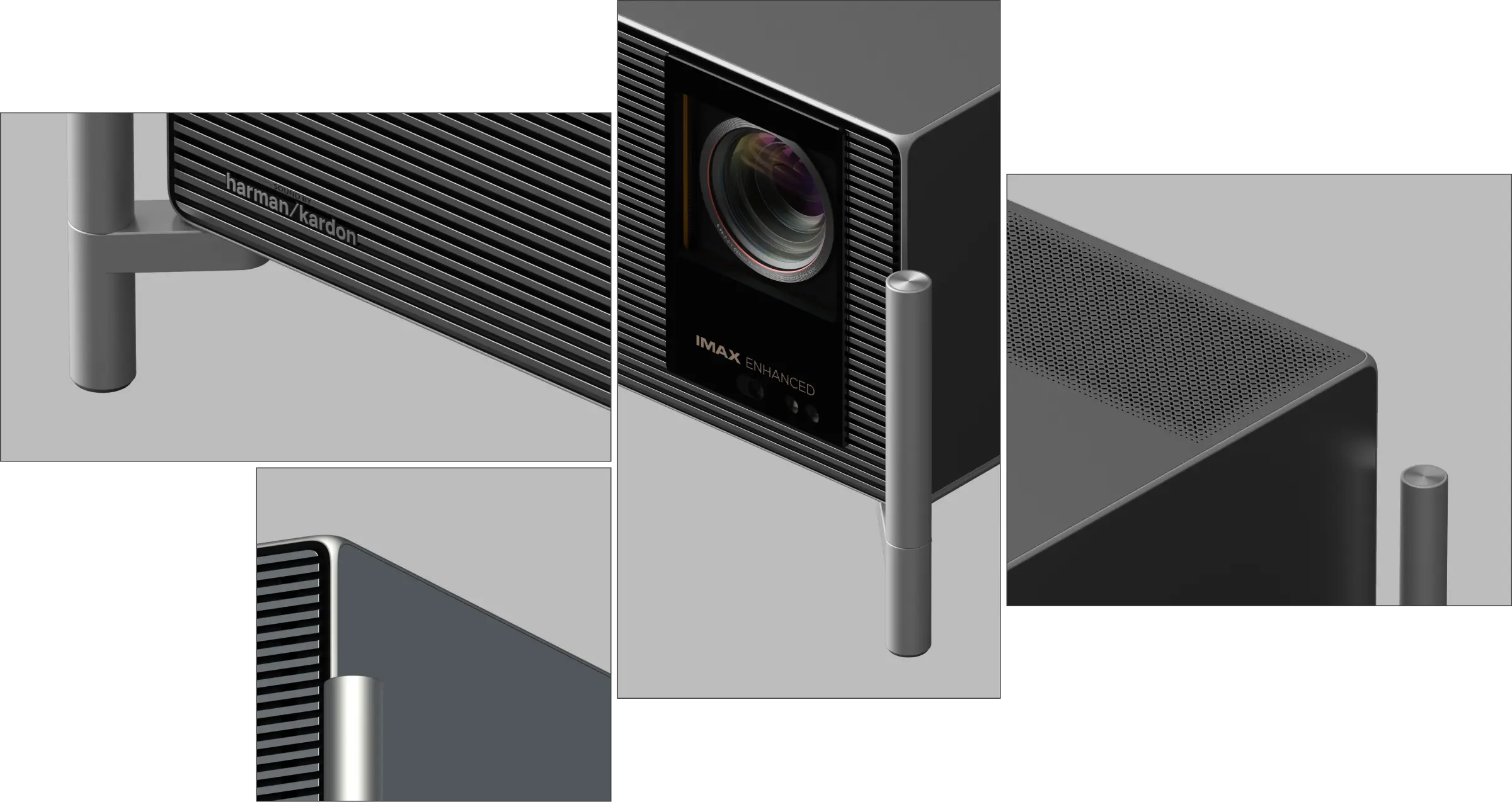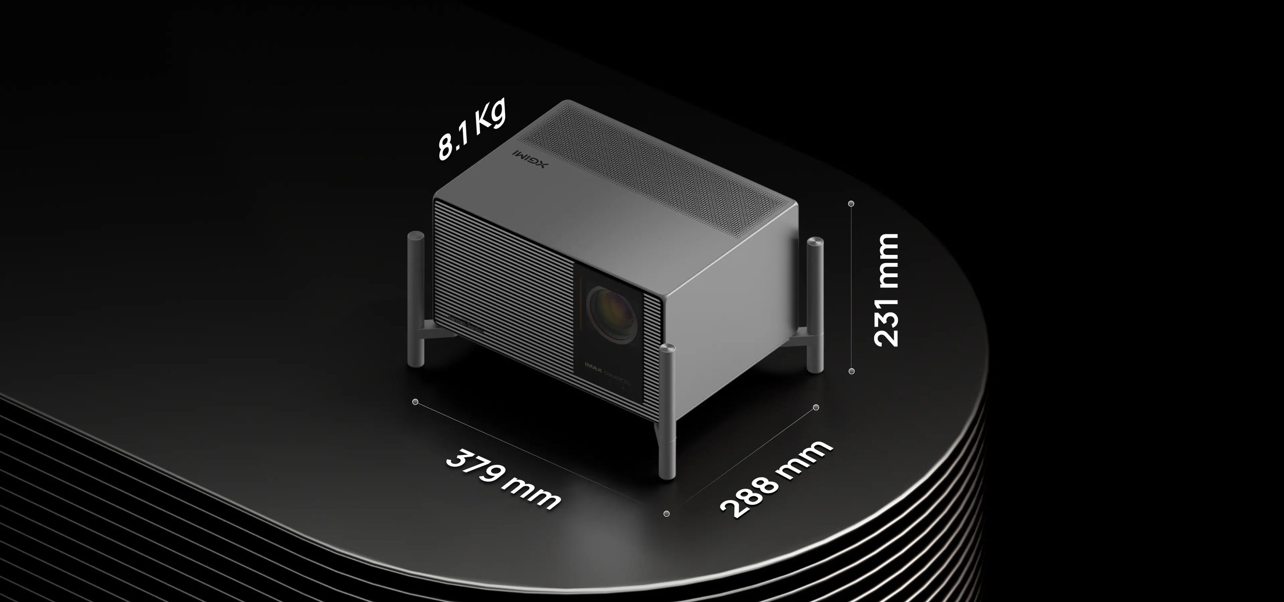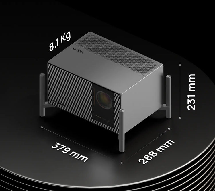 A sculptural form shaped by pure geometry, turning the projector into an architectural object with a bold, iconic presence.