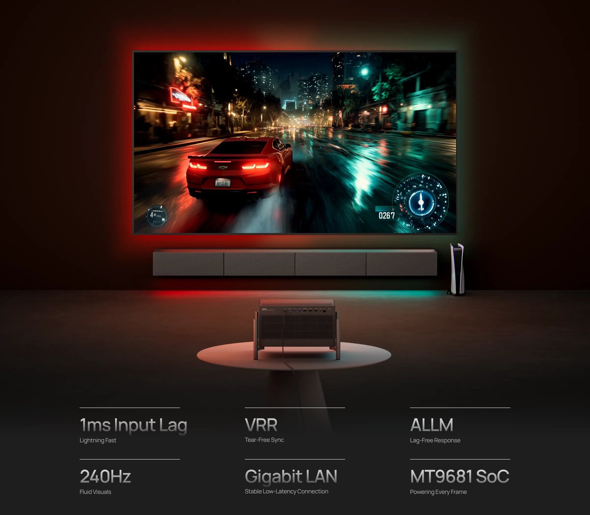 Experience epic gameplay on a giganic screen with 1ms input lag and 240Hz smoothness at 1080P. Connect instantly to PS5, Xbox, Switch, or cloud platforms for smooth, immersive gaming—anytime, anyway with zero compromise.