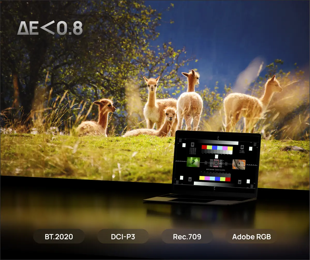 ΔE<0.8@BT2020、DCI-P3、Rec.709、AdobeRGB; BT.2020 110% Color Gamut