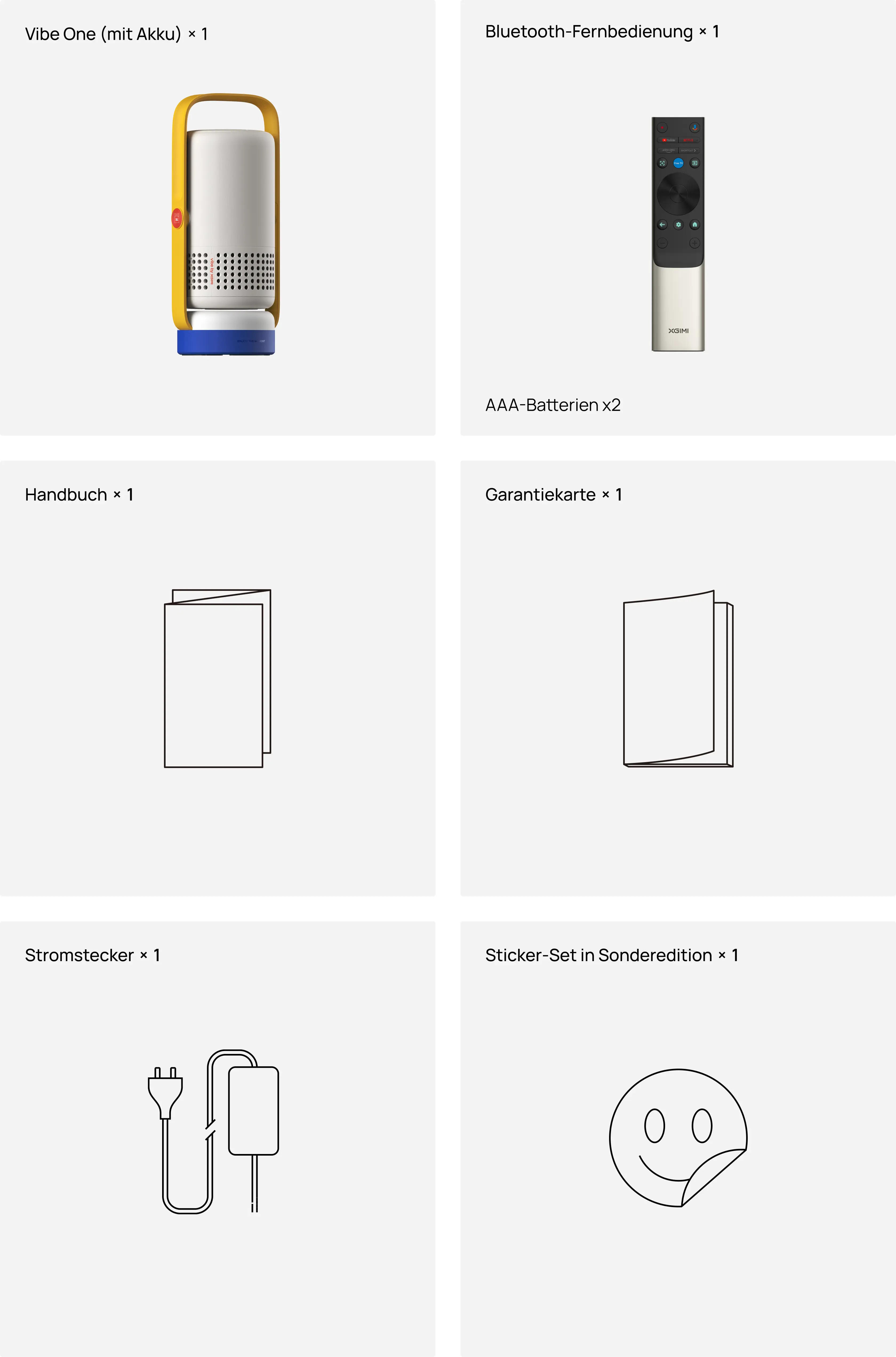 Stylish, auffälliges Design: Das moderne Design des Vibe One (mit Akku) verleiht jeder Umgebung deinen persönlichen Style. Wähle die Farbe, die zu dir passt – klassisches, zeitloses Grau oder eine retro-verspielte Kombination aus Blau und Gelb. Mit den beiliegenden Stickern kannst du deinen Projektor ganz einfach individuell gestalten. |